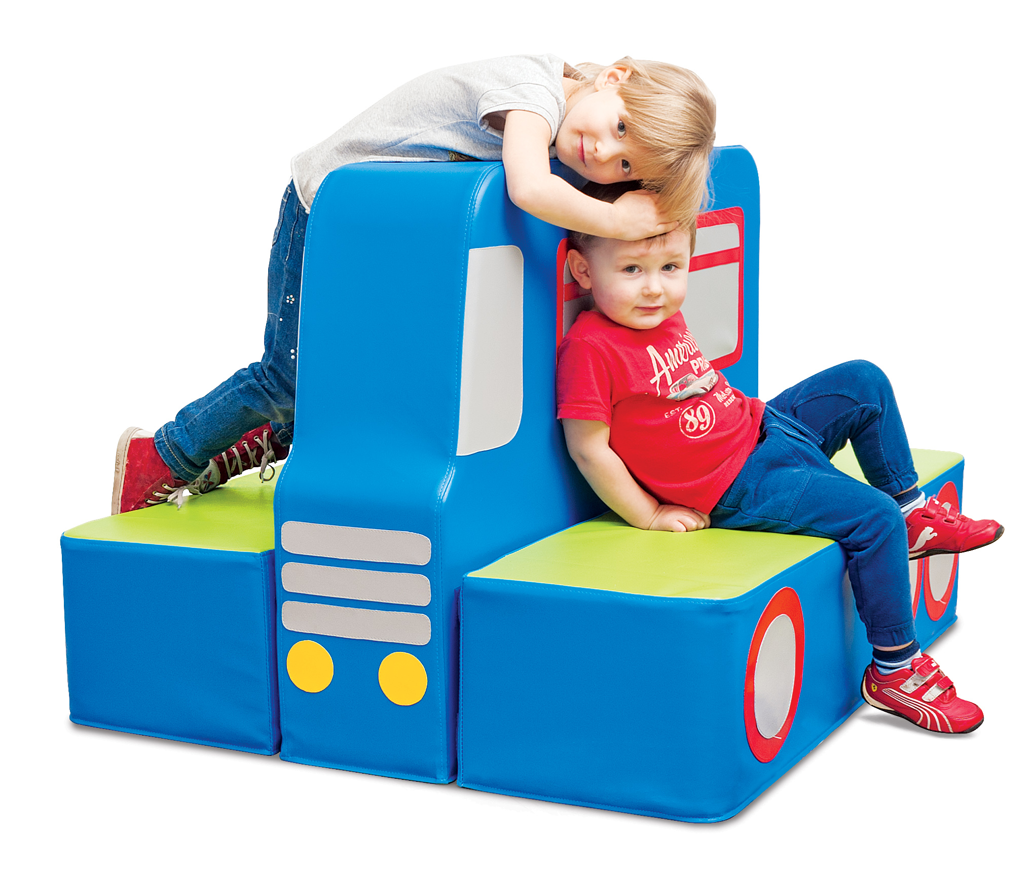 The double-sided sofa with a backrest will seat up to 8 children. 110 x 90 x 72 cm, Seat height 25 cm, seat depth 33 cm
