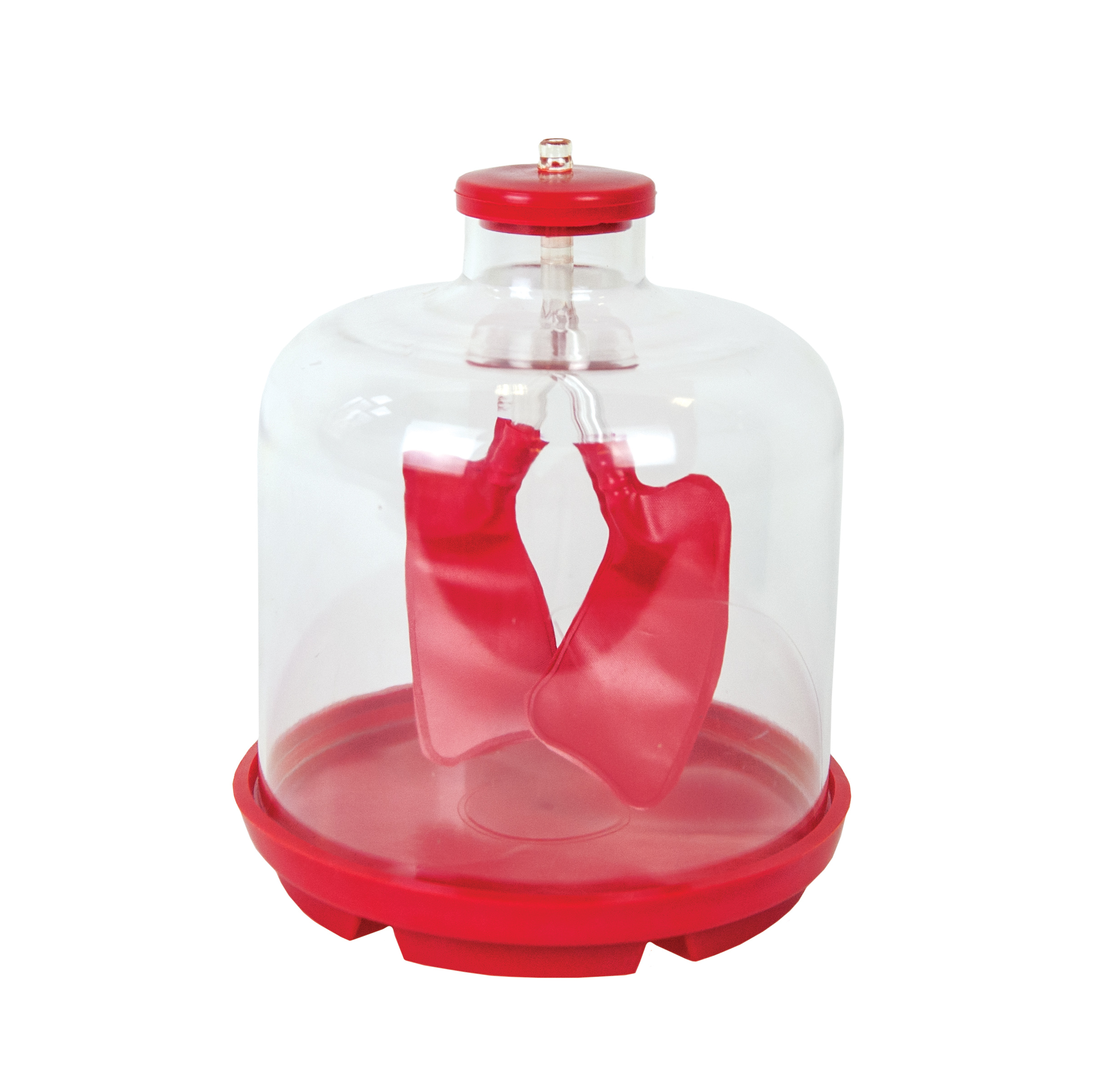 An aid to explain how lungs get filled and emptied of air thanks to the diaphragm. Set includes: a plastic jar (Ø 20 cm), a rubber disc, 2 balloons.