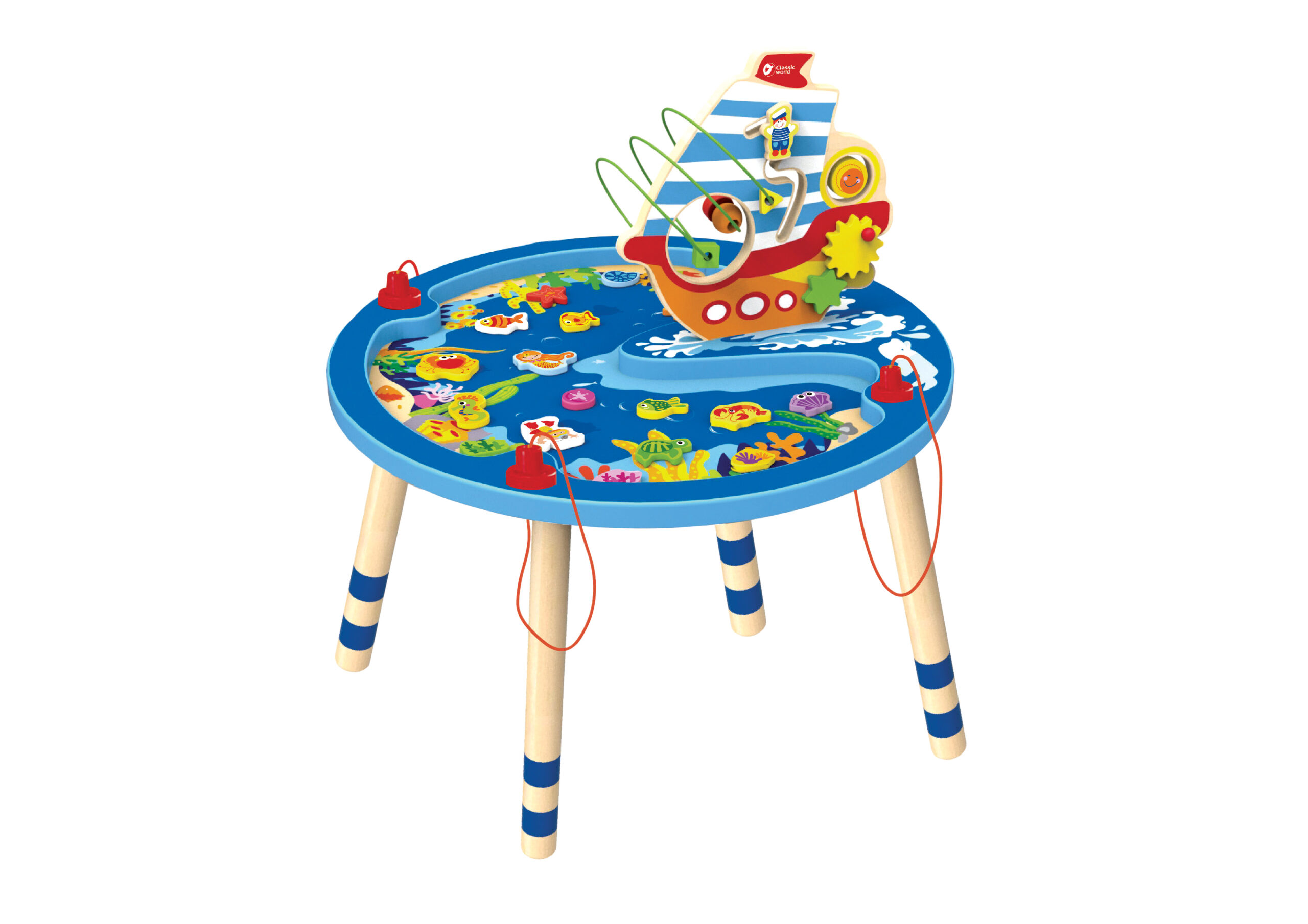 This play table with an exciting ocean theme. Kids can help the fish swim through the table with magnet, play with gears and beads and a fun sailor navigation game. 60 x 60 x 76 cm; age:3+