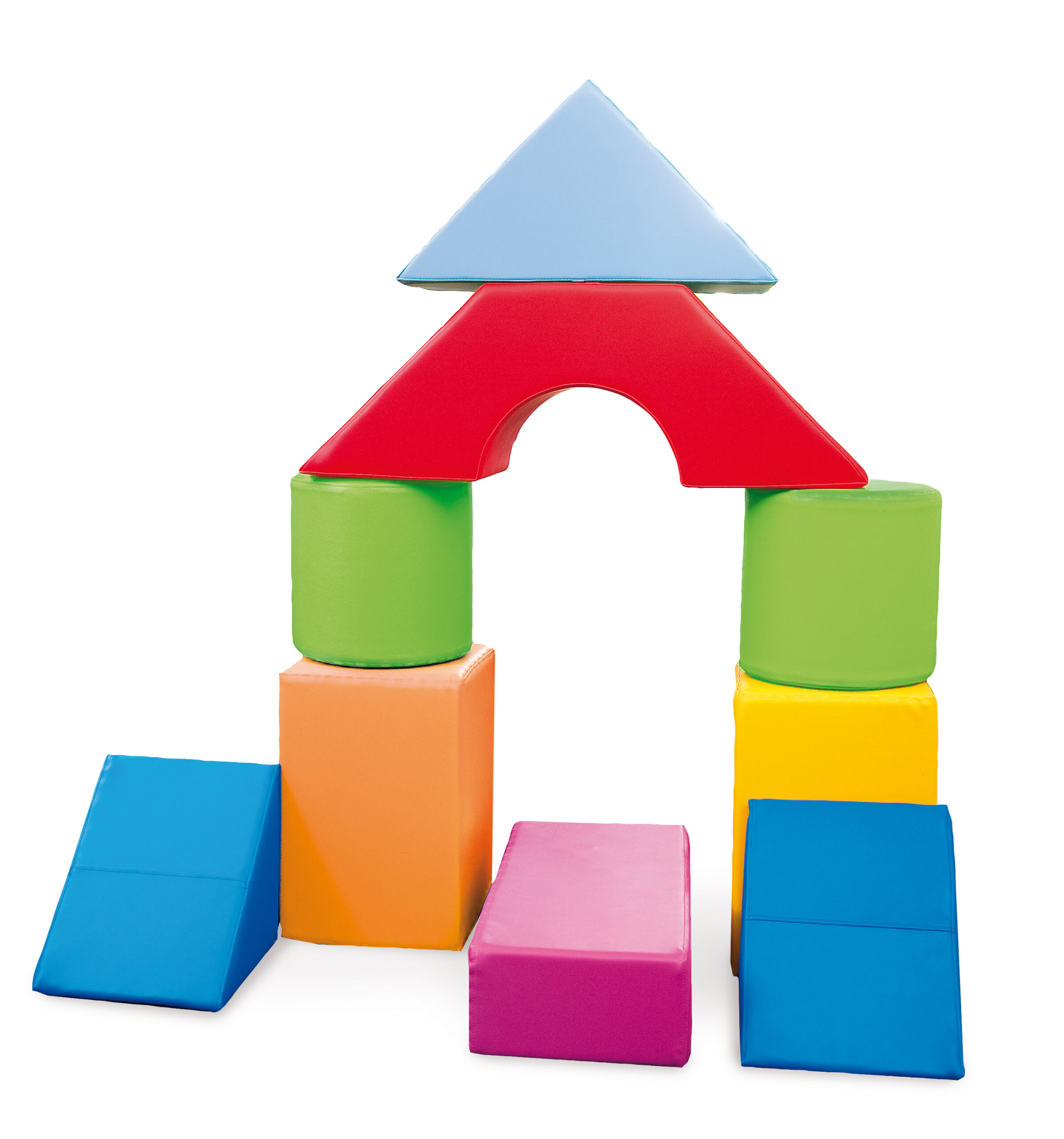 Colourful sets of 8, 10 or 11 blocks are ideal for creative construction and thematic play. They help develop spatial imagination and are conducive to teamwork. The highdensity foam blocks are covered in easy-to-clean PVC fabric.• 120 x 75 x 30 cm;