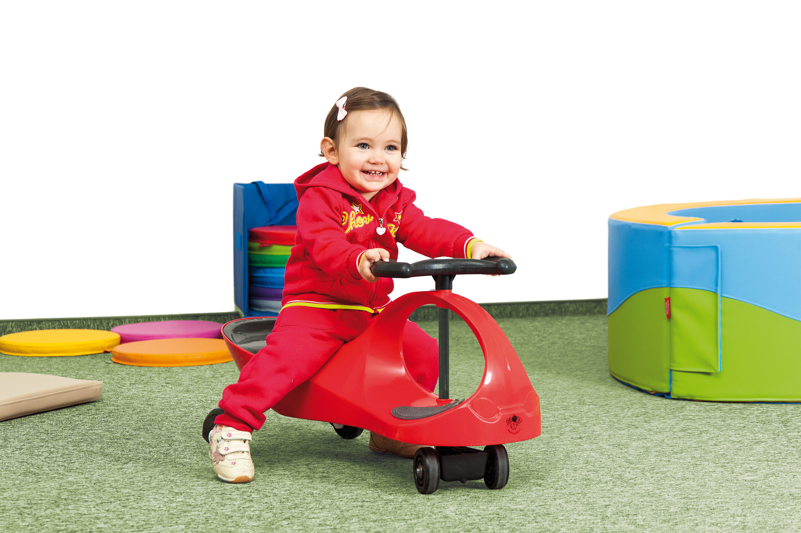 • A totally manually-powered ride-on vehicle. It moves by turning the steeringwheel left and right. L 75 cm, H 36 cm, W 28 cm age: 3+